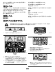 組み立て 付属部品 すべての部品がそろっているか、下の表で確認してください。 手順 内容 数量 用途 1 必要なパーツはありません。 – バッテリーに電解液を入れて充電し、機 体に取り付けます。 2 傾斜計 1 傾斜計を点検します。(モデル 30839, 30843 および 30807のみ 警告ステッカー104-5181 警告ステッカー99-3558 警告ステッカー107-1972 ロックブラケット リベット ワッシャ ねじ ¼ x 2 インチ ロックナット, ¼インチ 排気管ガード タップねじ 1 1 3 1 2 1 1 1 1 4 必要なパーツはありません。 – 昇降アームを調整します。 必要なパーツはありません。 – リアバラスト 必要なパーツはありません。 – キャリアフレームを調整します 必要なパーツはありません。 – 刈り高を調整します 必要なパーツはありません。 – 調整方法は以下の通り 必要なパーツはありません。 – マルチングバッフルオプションを取り付 けます 3 4 5 6 7 8 9 10 11 必要に応じて EU ステッ