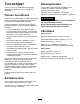 Turvallisuus rinteissä • Hidasta ja ole varovainen kääntyessäsi koneella ja ylittäessäsi teitä ja jalkakäytäviä. Anna muille aina etuajo-oikeus. • Hidasta konetta ja ole erityisen varovainen rinteillä. Aja rinteillä suositeltuun suuntaan. Nurmiolosuhteet voivat heikentää koneen vakautta. • Vilkkuvat varoitusvalot on kytkettävä, kun koneella kuljetaan yleisillä teillä, mikäli tällaisten valojen käyttöä ei ole kielletty lailla.