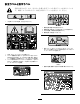 油圧ラインとホースの点検 店にご連絡ください。汚染されたオイルは乳液 状になったり黒ずんだ色なったりします。 整 備 間 隔 : 使用するごとまたは毎日 1. エンジンを止め、フードを開ける。 油圧ライン・油圧ホースにオイル漏れ、ねじ れ、支持部のゆるみ、磨耗、フィッティングの ゆるみ、風雨や薬品による劣化などがないか点 検する。異常を発見したら必ず運転を行う前 に修理してください。 2. 油圧ラインの接続部(図 56)または油圧 フィルタ(図 55)を外し、流れ出すオイル を容器に受ける。オイルが全部流れ出たら ラインを元通りに接続する。 高圧で噴出する作動油は皮膚を貫通し、身 体に重大な損傷を引き起こす。 • 油圧を掛ける前に、油圧ラインやホース に傷や変形がないか接続部が確実に締 まっているかを確認する。 • 油圧のピンホール・リークやノズルから は作動油が高圧で噴出しているので、絶 対に手などを近づけない。 図 56 1. • リークの点検には新聞紙やボール紙を 使う。 油圧ライン • 油圧関係の整備を行う時は、内部の圧力 を確実に解放する。 3.