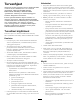 Kunnossapito ja varastointi • Pidä silmällä monttuja ja muita piileviä vaaroja. • Varo liikennettä, kun ylität tien tai työskentelet tien • • • • • • • • • • • • • • • • Huolehdi, että mutterit, pultit ja ruuvit ovat tiukalla, jotta lähistöllä. Pysäytä terien pyörintä, ennen kuin ylität muun kuin ruohopinnan. Kun käytät lisälaitteita, älä koskaan ohjaa leikkuujätteen poistoa ihmisiä kohti tai päästä ketään koneen lähelle käytön aikana.