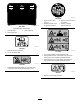 Safety and Instructional Decals Safety decals and instructions are easily visible to the operator and are located near any area of potential danger. Replace any decal that is damaged or lost. decal121-3887 121–3887 1. Read the Operator’s Manual. decal117-4763 117-4763 2. To disengage the parking 1. To engage the parking brake, disengage the brake, secure the brake locking pin and release the pedals with the locking pin, pedals. press the parking brake pedals, and engage the toe pedal.