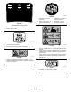 decal106-6755 106-6755 decal125-4604 1. Refrigerante del motor bajo presión. 3. Advertencia – no toque la superficie caliente. 2. Peligro de explosión – lea el manual del operador. 4. Advertencia – lea el manual del operador. 125–4604 Groundsmaster 4700 ilustrado 1. Elevar carcasa izquierda 3. Elevar carcasa derecha 2. Elevar carcasa central decal117-4765 117-4765 1. Lea el Manual del operador. decal117-4764 117-4764 2. No utilice productos para facilitar el arranque. 1.