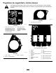 Montaje Piezas sueltas Utilice la tabla siguiente para verificar que no falta ninguna pieza. Procedimiento Descripción Uso Cant. Seguro de cierre Remache Arandela Tornillo, ¼" x 2" Contratuerca, ¼" 1 2 1 1 1 Instale el cierre del capó (CE). 2 3 4 5 No se necesitan piezas – Ajuste la altura de corte. No se necesitan piezas – Ajuste el rascador de rodillo (opcional). No se necesitan piezas – Instale el deflector de mulching (picado) (opcional). No se necesitan piezas – Engrase la máquina.
