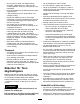 • Om du spiller bränsle på kläderna måste du byta • dem omedelbart. Fyll inte på för mycket bränsle i tanken. Sätt tillbaka tanklocket och dra åt det ordentligt. • Körning • • • Kör inte motorn i ett slutet utrymme där farlig • • • • • • • • koloxid och andra avgaser kan ansamlas. Klipp endast i dagsljus eller i bra belysning. Koppla bort klippaggregatet och dra åt parkeringsbromsen innan du startar motorn. Håll inte händerna eller fötterna nära eller under roterande delar.