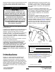 Durante l’uso • Fermate le lame ogni volta che non tosate, Sicurezza durante il funzionamento • • Requisiti generali di sicurezza • Il proprietario/operatore può impedire che si • verifichino incidenti che provochino infortuni a persone o danni alla proprietà. • Indossate un abbigliamento idoneo, comprendente • occhiali di protezione, scarpe robuste e antiscivolo e protezioni per le orecchie. Legate i capelli lunghi. Non indossate gioielli.