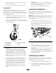 4. Saml styrehjulet ved at skubbe lejet ind i hjulnavet. Tryk på lejets yderste løbering, når du monterer lejerne. 5. Skub lejeafstandsstykket ind i hjulnavet. Skub det andet leje ind i hjulnavets åbne ende, så lejeafstandsstykket holdes fast inden i hjulnavet. 6. Monter styrehjulsenheden i styrehjulsgaflen, og spænd den fast med bolten og låsemøtrikken. Figur 19 1. Styrehjulsarmrør Serviceeftersyn af skæreknivene 2. Bøsninger 5. Smør indersiden og ydersiden af de nye bøsninger med fedt.