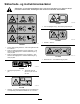 Sikkerheds- og instruktionsmærkater Sikkerheds- og instruktionsmærkaterne kan nemt ses af operatøren og er placeret tæt på potentielle risikoområder. Beskadigede eller bortkomne mærkater skal udskiftes. decal93-6696 93-6696 1. Fare ved oplagret energi – læs betjeningsvejledningen. decal119-6807 119–6807 1. Advarsel – intet trin decal120-6604 120-6604 1. Fare for udslyngede genstande – hold omkringstående væk fra maskinen. 2.