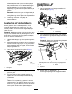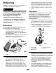 Serviceeftersyn af drivremmene Se Figur 22 for oplysninger om korrekt føring af drivremmene. decal121-5498 Figur 22 Remføring Serviceeftersyn af bøsningerne i styrehjulsarmene Styrehjulsarmene har bøsninger presset ind i den øverste og nederste del af røret. Efter mange driftstimer vil disse bøsninger blive slidt. Bøsningerne kontrolleres ved at flytte styrehjulsgaflen frem og tilbage og fra side til side. Hvis styrehjulsspindlen er løs inden i bøsningerne, er bøsningerne slidte og skal udskiftes.