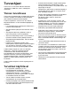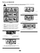 Turvaohjeet • Pukeudu asianmukaisesti. Käytä silmäsuojaimia, tukevia liukastumisen estäviä kenkiä, pitkiä housuja ja kuulosuojaimia. Sido pitkät hiukset. Älä käytä riippuvia koruja. Tämä kone on suunniteltu EN ISO 5395:2013 -standardin ja ANSI B71.4-2012 -määrityksen mukaisesti. • Tarkasta alue, jolla konetta on tarkoitus käyttää, ja Yleinen turvallisuus • Tarkista, että käyttäjän pitokytkimet, turvakytkimet poista kaikki esineet, jotka se voi singota, kuten kivet, leikkikalut ja johdot.