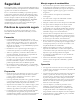 Mantenimiento Calendario recomendado de mantenimiento Intervalo de mantenimiento y servicio Procedimiento de mantenimiento Después de las primeras 2 horas • Apriete las tuercas de las ruedas giratorias Después de las primeras 10 horas • Apriete las tuercas de las ruedas giratorias Después de las primeras 50 horas • Cambie el lubricante de la caja de engranajes de la carcasa del cortacésped Cada vez que se utilice o diariamente • Lubrique los casquillos de los brazos de las ruedas giratorias • Lubri