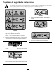 • Sepa cómo parar rápidamente el motor. sistema parando el motor y bajando las unidades de corte al suelo. • No haga funcionar la máquina calzando sandalias, • Si el motor debe estar en marcha para realizar un ajuste, zapatillas de deporte o similares. mantenga las manos, los pies, la ropa y otras partes del cuerpo alejados de las unidades de corte, los accesorios y otras piezas en movimiento. Mantenga alejadas a otras personas.
