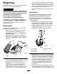 Serviceeftersyn af drivremmene Se Figur 21 for oplysninger om korrekt føring af drivremmene. decal121-5498 Figur 21 Remføring Serviceeftersyn af bøsningerne i styrehjulsarmene Styrehjulsarmene har bøsninger presset ind i den øverste og nederste del af røret. Efter mange driftstimer vil disse bøsninger blive slidt. Bøsningerne kontrolleres ved at flytte styrehjulsgaflen frem og tilbage og fra side til side. Hvis styrehjulsspindlen er løs inde i bøsningerne, er bøsningerne slidte og skal udskiftes.