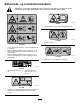 Sikkerheds- og instruktionsmærkater Sikkerheds- og instruktionsmærkaterne kan nemt ses af operatøren og er placeret tæt på potentielle risikoområder. Beskadigede eller bortkomne mærkater skal udskiftes. decal93-6696 93-6696 1. Fare ved oplagret energi – læs betjeningsvejledningen. decal119-6807 119–6807 1. Advarsel – intet trin decal120-6604 120-6604 1. Fare for udslyngede genstande – hold omkringstående væk fra maskinen. 2.