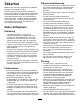 Säker bränslehantering Säkerhet • Var mycket försiktig när du hanterar bensin så att Maskinen har utformats i enlighet med SS-EN ISO 5395:2013 och ANSI B71.4-2012. Felaktig användning eller felaktigt underhåll från förarens eller ägarens sida kan leda till personskador. För att minska risken för skador ska du alltid följa dessa säkerhetsanvisningar och uppmärksamma varningssymbolen. Symbolen betyder Var försiktig, Varning eller Fara – anvisning för personsäkerhet.