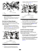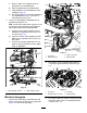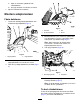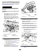 T-stycke och änden med den raka kopplingen till T-stycket på pumpen (Figur 17). 1 2 3 g026235 Figur 15 1. Lock 2. T-stycke 3. Grenrörsblock 4 G025295 g025295 Figur 17 Sett från maskinens undersida 4. Anslut slangen till änden på T-stycket och dra åt båda slangkopplingarna. Obs: Kontrollera att slangen inte är vriden och inte kommer i kontakt med heta, vassa eller rörliga delar. 3. Kort slang 2. T-stycke 4. Lång slang 4.