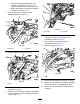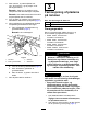 g029560 g029562 Figur 33 Figur 35 1. Skærmmontering 1. Bor her 6. Monter slangeklemmen og skærmmonteringen løst på rammekanalen med den bolt, du fjernede tidligere. 10. Bor 2 huller (med en diameter på 7,137 mm) gennem rammekanalen (Figur 35) de steder, du markerede i trin 8. 7. Placer rammemonteringen vandret på rammekanalen. 11. 8. Brug rammemonteringen som skabelon til at finde og markere de øvrige 2 skærmmonteringshuller i rammekanalen (Figur 34).