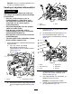 2. I. Fastgør spolen/afstandsbøsningen på ventilen med møtrikken (Figur 10), og tilspænd møtrikken til et moment på 7 N·m. J. Monter løfteventilens manifold ved hjælp af de bolte, du fjernede i trin C. Fjern slangen fra det bageste hul på skjoldløftecylinderen (Figur 11). g026618 Figur 13 1. Kort slange g026616 Figur 11 1. Bageste hul 3. 2. Lang slange 6. Monter den korte slanges modsatte ende på T-fittingen i det bageste hul på skjoldløftecylinderen (Figur 13). 7.