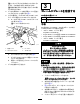 g026556 図 41 刈高ピン 1. 2. 刈高ブラケット g029567 図 40 9. 各締め具を本締めする。 10. バッテリーのプラスケーブルを接続し、次にマイ ナスケーブルを接続する。 11. 駆動輪を取り付ける。 12. ラグナットを 102-115 N·m10.4-11.8 kg.m=75-85 ft-lbにトルク締めする。 13. 2. 3. ジャッキスタンドを外し、機体を床に降ろす。 刈り込みデッキの水平調整を行うデッキの オペ レーターズマニュアル を参照。 4. デッキおよび PTO 駆動シャフトにグリスを注入す るデッキの オペレーターズマニュアル の潤滑に ついての説明を参照。 5.