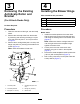 g003398 g002519 Figure 9 Figure 10 1. Idler pulley 4. Peg 1. Bolt 5. Spring installed 2. Mower deck pulley 5. Belt 2. Spacer 6. Grass deflector 3. Spring 6. Blower pulley 3. Locknut 7. L-end of spring; place it behind the deck edge before installing the bolt. 4. Spring 8. J-hook end of spring 6 2. Slide the blower assembly peg into the pivot hole (Figure 11).