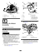 g033987 Figure 22 1. Locknut (1/4 inch) 3. New belt cover bracket 2. Drilled hole 4. Carriage bolt (1/4 x 3/4 inch) g012500 Figure 23 1. Throttle stop 11 2. Insert the throttle stop onto the governor shaft so the tab rests against the flat on the speed-control lever (Figure 23). 3. Install the washer and nut onto the shaft and torque to 9.7 to 12.0 N∙m (86 to 106 ft-lb).