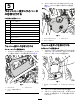 注意 高温高圧の冷却液を浴びたり、高温のラジ エター部分に触れたりすると大火傷をする恐 れがある。 • エンジンが高温のうちは、ラジエターの プラグを抜かないこと。プラグを抜く時に は、必ず、ラジエターが十分に冷えるま 分ぐ ら い 待 っ て か ら 行 う こ と 。 で 15分 • ラジエターや周囲の高温部分に触れない ように注意すること。 g033038 図 20 1. エアクリーナのプレート 2. 130 mm 2. 3. 穴直径 17.5 mm ボルト5/16 x 2"を使って、ホースブラケットをフ レームに固定する図 21。 6. ラジエターの下ホースの下に受け容器をおく。 7. ドレンプラグを抜き取り、排出されるラジエター 液を容器に回収する。 8. 下ラジエターホースを直線部分の中央で切断し、 冷却系統に残っている冷却液を回収する。 9. T-字フィッティングを取り付けるバーブ鋸歯を 図 22のように下に向けること。 10. ホースクランプ1½" 2 個を使って固定する。 g033075 図 22 g033039 図 21 1.