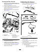 Installing the Kit Installing the Sensor Module 1. Disconnect the battery. Refer to the Operator’s Manual for the procedure. 2. Move the seat forward. 3. Tilt the back cover forward or remove to gain access to the wires (Figure 1 or Figure 2). g321253 Figure 2 Machine with rollbar 1. Back cover 4. Install the sensor bracket to the frame with 2 bolts (1/2 x 1 inch); refer to Figure 3. Note: The holes in the frame are threaded. g321252 Figure 1 Machine with cab 1.