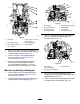4. Ta bort locket från den 45-gradiga hydraulkopplingen i fördelaren för bakre drivning som du monterade i steg 3 av Ta bort drivstyrningsslangen (sida 6). 5. Skruva fast krysslangens slangkopplingar på kopplingarna i T-kopplingen och fördelaren för bakre drivning och dra åt kopplingarna till ett moment på 51–63 Nm. Montera slangen för bakre drivning 1. g212925 Figur 13 1. Fördelare för bakre drivning 4. Mjuk ledskena 2. 45-gradig hydraulkoppling (fördelare för bakre drivning) 5. Stödfäste 3.
