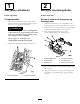 Figur 25 1. Platformsafskærmning 2. Forlygte 4. Skivehovedskruer og -møtrikker 5. Forlygteledningskonnektorer 3. Bræddebolt og møtrik 6. Hul til ledningsnet Figur 27 1. Dæksel 2. Rundhovedede skruer med unbrakokærv 12. Fastgør afskærmningen og forlygterne til stellet med de to bræddebolte og møtrikker, du fjernede tidligere (Figur 25). 16. Fastgør ledningsnettet til stammen ved hjælp af de kabelbånd, du fastgjorde i hullerne i monteringsbeslaget til ratstammen. Se Figur 14. 13.