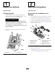 1 1 2 2 3 4 G023200 Figur 23 G023198 Figur 21 1. Klämma 1. Självgängande skruvar (nr 8 x 1/2 tum) 3. Kopplingsdosa 2. Jordad uttagsplint 4. Kablagets säkringsblock 2. Packning 5. Anslut den stora ringkopplingen från kablaget till tappen på kopplingsdosan (Figur 23). 2. Dra upp kablagets säkringsblockenhet från undersidan på traktorenhetens högra del och för in den i säkringsdosans öppning (Figur 22). 6. Montera klämman och packningen på traktorenheten med huvudskruven med fläns (Figur 21). 7.