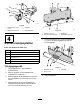 • Alla andra maskiner: Obs: Äldre maskiner kan ha ett chassiben som sticker ut framför kylarramens fästelement. Ta bort chassibenet och sanda och måla sedan över den nya chassiänden (Figur 6). g239132 Figur 8 Maskinens vänstra sida visas 1. Mutter (5/16 tum) 3. Bakljusfäste 2. Skruv (5/16 x ¾ tum) g260849 Figur 6 1. Skärplats – chassi A. 3. 2. Chassiben Lossa de befintliga fästelementen på båda sidor av kylarramen in mot maskinramsskenan (Figur 7).