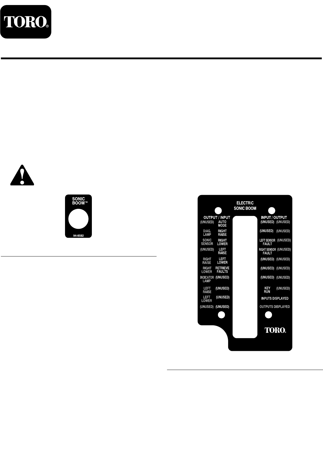 Form No. 3369-714 Rev B Sonic Boom™ -sarja Vuoden 2010 ja uudemmat Multi Pro®-ruiskutuslaitteet ja Workman® 200 -ruiskutusjärjestelmä Mallinro: 41218—Sarjanro: 311000001 tai suurempi Asennusohjeet Tämä lisälaite auttaa pitämään puomin suuttimien ja maanpinnan välisen etäisyyden tasaisena, kun ruiskutetaan epätasaista maastoa. Se on tarkoitettu ammattimaiseen kaupalliseen käyttöön.
