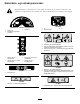 Sikkerhets- og instruksjonsmerker Sikkerhetsmerker og -instruksjoner er lett synlige for føreren og er plassert i nærheten av alle områder som representerer en potensiell fare. Bytt ut alle merker som er ødelagte eller mangler. 106-5065 107-8621 1. Risting på 2. Kontinuerlig regulerbar innstilling 1. På 2. Tømme tanken 3. Risting av 3. Av 106-5016 1. Advarsel – les brukerhåndboken. 2. Fare for elektrisk støt, strømledninger i luften – hold god avstand til strømledninger i luften. 3.