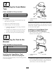 Installing the Tank and Bracket on the Multi-Pro® 5700-D 1. Position the sprayer on a level surface, set the parking brake, stop the pump, stop the engine, and remove the ignition key. 2. At the right rear fender, loosen the 4 bolts at the front and rear of the fender. 3. Install the bracket to the holes in the right rear fender using 4 carriage bolts (5/16 x 1 inch) and 4 locknuts (5/16 inch) as shown in Figure 6. Figure 7 1. Bracket, Workman 200 4. Handle 2. Bolt (3/8 x 1 inch), existing 5.