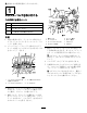 D. そして、その位置から押して、クランプを ピボットハウジングにはめる(図 19)。 3 2 1 G013937 1 2 5 4 図 19 1. スプリング・クランプ 2. ピボット・ハウジング G013936 6. クレードルのバックプレート上のエダクタ の高さを点検し、必要に応じて調整する。エ ダクタをクレードルに固定する締結具の本締 めを行う。27~33 ft-lb(36~45 Nm=3.7~ 4.6 kg.m)にトルク締めする。 7. タンク固定ベルト上のエダクタ・アセンブ リの全体の位置を点検する。エダクタは移動 位置で真っ直ぐに立っていることが必要で ある。フレーム・アセンブリの下部のロッ クナットをゆるめてタンクに固定する。外 さないこと。必要に応じて位置を調整し、 ロックナットを締め付ける。ストラップを 必ずタンクに固定すること。 図 17 1. ボルト (3/8 x 1 インチ) 4. 穴(エダクタ・アセンブリ取 り付けプレート) 2. バックブレート 5. エダクタ・アセンブリ取り付 けプレート 3.