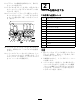 G013934 4 1 1 2 3 6 G013933 図 15 1. 2. トングプレートのリップ 締結具 3. プレートのスリット 4. 溶接されたタブ 2 3. トングの締結具を締めて固定し、固定が完 了したらバックプレートにかけていた力を 抜く。 3 5 クレードルにガタがあるかどうかをチェックす る。フレーム・アセンブリにガタなく保持され ていればよい。エダクタをロック位置に取り付 けたあとでもういちどこの調整を行ってロック 位置の調整を行うことができる。 1. この作業に必要なパーツ 1 ハンドル 2 ボルト 1 スプリング・クランプ 2 ボルト(#10-24 x 1/2 inch) 2 ロックナット(#10-24) 4 ボルト (3/8 x 1 インチ) 4 ロックナット((3/8 インチ)) 4. ロックナット(#10-24) 2. スプリングクランプ 5. ボルト 3. ボルト(#10-24 x 1/2 inch) 6. ハンドル 4.