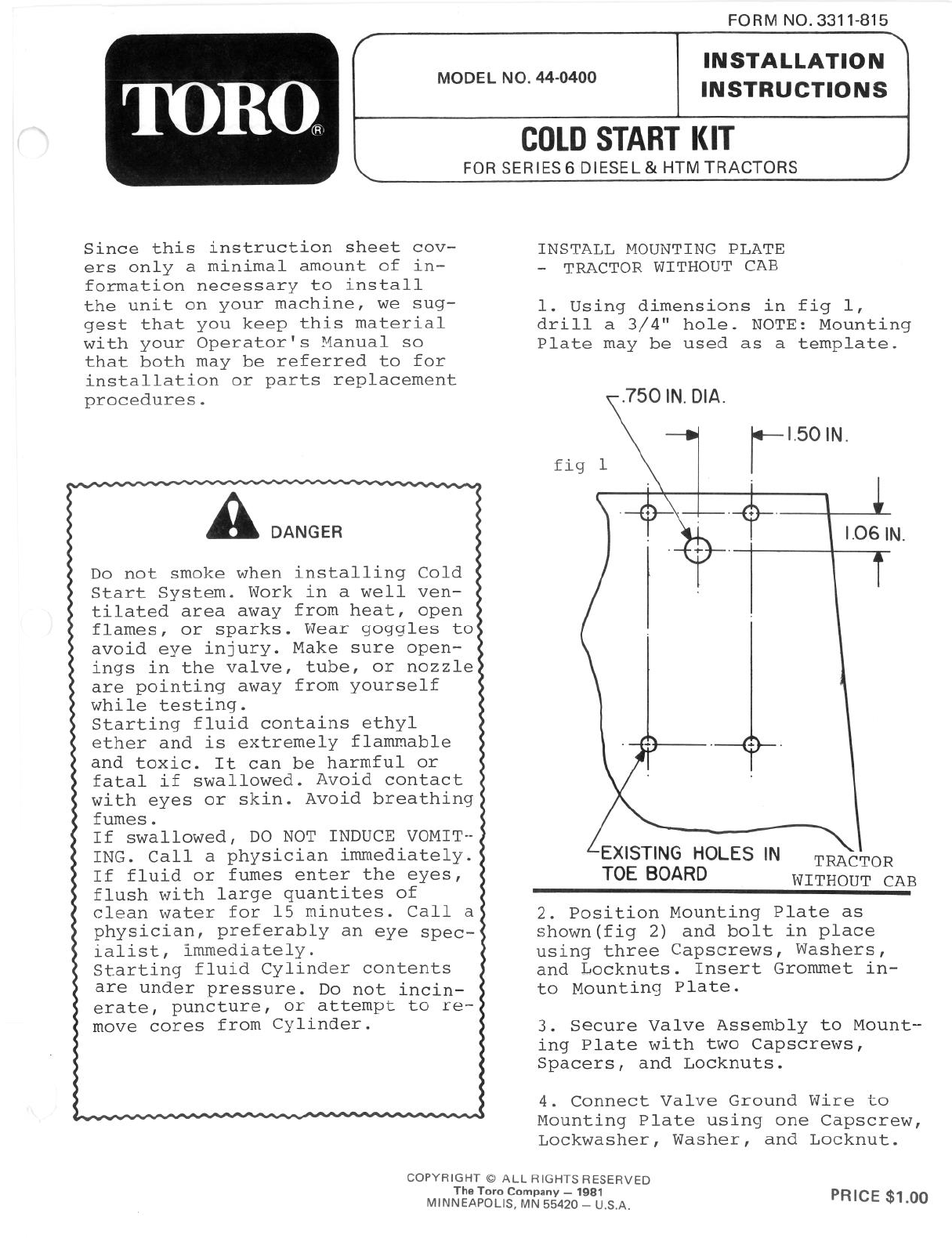 Cold Start Kit, Series 6 Diesel and HTM Tractors