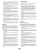 The safety-interlock system is designed to prevent the engine from starting unless: Starting the Engine • The blades are disengaged. Note: A warm or hot engine may not require choking. • The motion-control levers are in the PARK position. Important: Do not engage the starter for more than 5 seconds at a time. Engaging the starter motor for more than 5 seconds can damage the starter motor. If the engine fails to start, wait 10 seconds before operating the engine starter again.