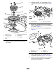 4. • Voor blazermodellen 78404, 78405 en Hou de spilas tegen met een sleutel (1½") wanneer u de dubbele poelie op de rechterspilas monteert. 78406 voert u de volgende procedure uit: A. Steek de schroefbouten op de poeliebevestiging door de openingen in de maaidekpoelie (Figuur 12). • Voor blazermodellen 78401, 78402 en 78403 voert u de volgende procedure uit: A. Gebruik de borgmoer (¾") en ring om de nieuwe dubbele poelie aan de rechter spilas te bevestigen (Figuur 11). B.