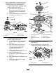 Merk: Sørg for at remmen forblir liggende i riktig stilling mot remskiven. 4. Flytt låsestiften fra låsestilling til åpen stilling (Figur 20). g309586 Figur 21 1. Vifterem 2. Drivremskive g309296 Figur 20 1. Låsepinne 2. 4. Lederull 2. Sjaktbrakett 5. Rem (under lederullen) 3. Svingbrakett for lederull 6. Vifteenhet 5. Lukk vifteenheten og rett in låsestiften med hullet i sjaktbraketten (Figur 20). 6. Flytt låsestiften til låst stilling.