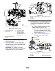 Informacja: Sprawdź, czy pasek jest nadal 6 właściwie ułożony na kole pasowym dmuchawy. 4. Przesuń kołek zaczepu z pozycji zablokowanej do pozycji otwartej (Rysunek 20). Montaż paska dmuchawy oraz pokrywy paska dmuchawy Części potrzebne do tej procedury: 1 Pokrywa paska dmuchawy 1 Gałka Procedura 1. g309296 Rysunek 20 1. Kołek zaczepu 4. Jałowe koło pasowe 2. Wspornik kanału 5. Pasek (poniżej jałowego koła pasowego) 3. Wspornik osi obrotu koła jałowego 6. Zespół dmuchawy 5.