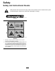 Safety Safety and Instructional Decals Safety decals and instructions are easily visible to the operator and are located near any area of potential danger. Replace any decal that is damaged or missing. decal133-8061 133-8061 decal126-4662 126-4662 1. Warning—read the Operator’s Manual for the correct quantity of counterbalance weight(s). 2.