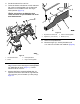 8. Dra åt skruvarna till 37–45 N·m. 9. Ta bort de främre två bultarna och två muttrarna från höger monteringsfäste och de främre två bultarna och två muttrarna från den högre kolonnpanelen (Figur 11). Viktigt: Kontrollera att fläkthöljet inuti ramen inte faller ner på växellådan när du tar bort fästelementen. g037608 Figur 12 1. Styrkolonnens främre del 3. Främre monteringsfäste 2. Vagnsskruv (1/4 x 5/8 tum) 4. Mutter (¼ tum) g037607 Figur 11 1. Transmissionsskruv 3. Kolonnpanelskruv 2.