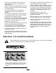 • Håll händer och fötter borta från rörliga delar. Gör • Lär dig hur man använder utrustningen på ett inga justeringar när motorn är igång. säkert sätt och bekanta dig med reglage och säkerhetsskyltar. • Stanna maskinen på jämnt underlag, koppla ur • Var extra försiktig med gräsuppsamlare och andra drivhjulen, koppla in parkeringsbromsen, stäng av motorn och ta ut nyckeln innan du lämnar förarsätet, oavsett orsak. Detta gäller även när du ska tömma gräsuppsamlaren eller rensa utkastaren. tillbehör.