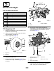 5 Montera beslagen Delar som behövs till detta steg: 1 Främre monteringsfäste 1 Nedre monteringsfäste 1 Bakre monteringsfäste 1 Höger monteringsfäste 2 Planbricka 2 Skruv (3/8 x 4 tum) 1 Vagnsskruv (3/8 x 1 tum) 1 Mutter (3/8 tum) 2 Vagnsskruv (1/4 x 5/8 tum) 2 Mutter (1/4 tum) g037605 Figur 9 1. Bult 3. Höger växellåda 2. Mutter 6. Tillvägagångssätt 1. Avlägsna bränsletanken. Mer information finns i maskinens bruksanvisning. 2.