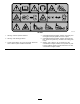 decal136-4087 136-4087 1. Warning—read the Operator’s Manual. 4. Cutting/dismemberment hazard, impeller—keep away from moving parts; keep all guards and covers in place. 2. Warning—wear hearing protection. 5. Cutting/dismemberment hazard, impeller—disengage the PTO, remove the ignition key, and wait for all moving parts to stop. 3. Thrown object hazard—do not run the blower without the entire collection system installed and latched. 6.