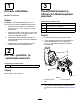 5 Kannattimien asennus Vaiheeseen tarvittavat osat: 1 Etummainen asennuskannatin 1 Alempi asennuskannatin 1 Takimmainen asennuskannatin 1 Oikeanpuoleinen asennuskannatin 2 Litteä aluslaatta 2 Pultti (⅜ × 4 tuumaa) 1 Lukkopultti (⅜ × 1 tuumaa) 1 Mutteri (⅜ tuumaa) 2 Lukkopultti (¼ × ⅝ tuumaa) 2 Mutteri (¼ tuumaa) g037605 Kuva 9 1. Pultti 3. Oikeanpuoleinen vaihteisto 2. Mutteri 6. Ohjeet 1. Irrota polttoainesäiliö. Lisätietoja on koneen käyttöoppaassa. 2.