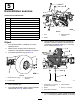 decal138-8866 Kuva 5 g037529 Kuva 7 1. Nuppi 3. Hihnasuojus 2. Kiristinpyörän ruuvi Huomaa: Kun puhallinkokoonpano on avattava, irrota hihnasuojus ensin. 4 Kerääjän parannussarjan asennus (lisävaruste) g293335 Vaiheeseen tarvittavat osat: Kuva 6 1. Puhaltimen hihna 1 2. Leikkuupöydän hihna 4. Sulje puhallinkokoonpano niin, että puhaltimen kannattimen kahva lukittuu. 5. Asenna hihnasuojus ja kiinnitä se ruuvaamalla nuppi kiristinpyörän ruuviin (Kuva 7).