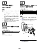 5. バガーからチューブを外す。 6. 棒などを使用して決して素手で行わないこと、 チューブ内部の詰まりを除去する。 注 ほとんどの場合、チューブを揺すると詰まりは 解消します。 バッグ 2. 8. ブロアアセンブリが詰まっている場合には、ベル トカバーを外し、ブロアアセンブリのラッチを外し てアセンブリを開ける。 9. 棒などを使用して決して素手で行わないこと、ブ ロアアセンブリ内部の詰まりを除去する。 10. 詰まりが除去できたら、ブロアアセンブリを元通り に組み立て、ラッチで固定する。 下部の取っ手 7. もう一方のバッグにも同じ作業をする。 8. バッグのタブをバガーサポートのフレームのノッチ に掛ける。両方のバッグについてこれを行う。 9. バガーフードを下ろす。 10. チューブを取りつける。 バガーの取り外し g003357 図 25 1. 7.