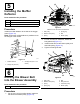 5 Installing the Muffler Deflector Parts needed for this procedure: 1 Muffler deflector 2 Flange nut (3/8 inch) 2 Carriage bolt (3/8 x 1-1/4 inches) g003398 Figure 13 Blower for 60- and 72-inch machines Procedure Install the muffler deflector to the side of the bagger frame (Figure 12). 1. Idler pulley 4. Spring peg 2. Machine deck pulley 5. Belt Note: Ensure the muffler deflector is positioned over 3. Spring 6. Blower pulley the tail pipe of the muffler. 2.