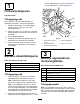 Underhåll Rekommenderat underhåll Underhållsintervall Efter de första 8 timmarna Efter de första 100 timmarna Varje användning eller dagligen Underhållsförfarande • Kontrollera blåsarremmen. • Kontrollera uppsamlingssystemet. • Justera parkeringsbromsen (även när du byter ut eller tar bort en bromskomponent). • Rengör huvskärmen. • Rengör uppsamlingssystemet. Var 25:e timme • Kontrollera blåsarremmen. Var 50:e timme • Smörj mellandrevsarmen. Var 100:e timme • Smörj handtagets vridpunkt.